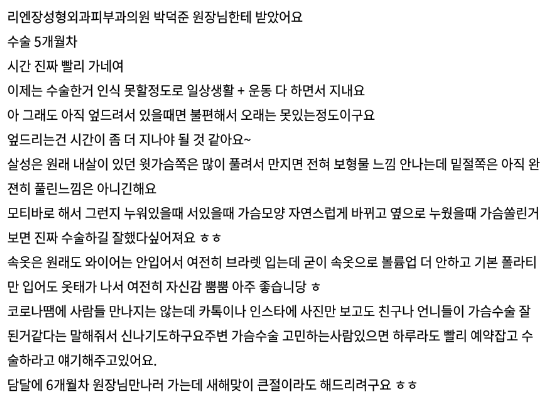 Лиенжан гоо сайхны мэс заслын эмнэлэг ★★★★★ 5.0 [강남언니] 가슴성형(모티바) / 5개월차/ 닉네임:Regina0 | 2022.01.11 | 14 리엔장성형외과에서 수술 받은 후 강남언니에 업로드한 실제 후기입니다. 수술항목: 가슴성형(모티바 / 왼355cc, 오375cc) Сэтгэгдэл жагсаалт руу