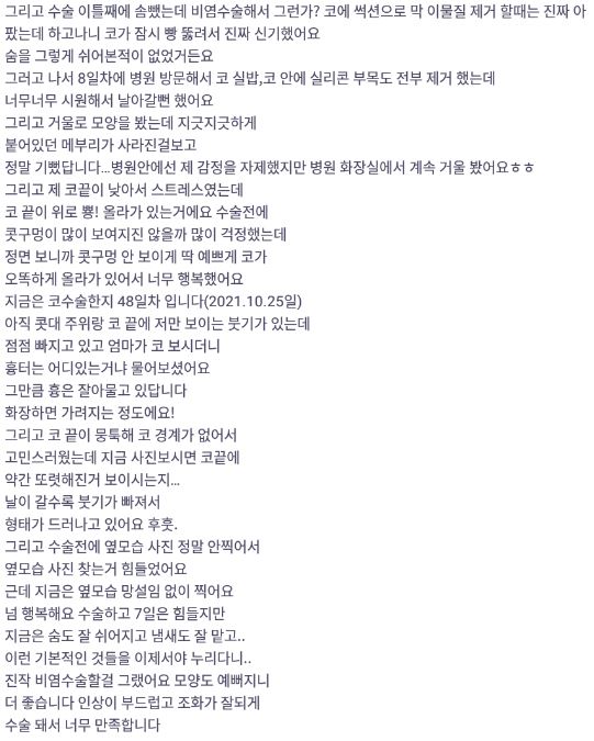 Лиенжан гоо сайхны мэс заслын эмнэлэг ★★★★★ 5.0 [바비톡] 코성형 / 1개월차/ 닉네임:김민지1111 | 2022.01.11 | 17 리엔장성형외과에서 수술 받은 후 강남언니에 업로드한 실제 후기입니다.수술항목: 코성형(콧대,코끝,기능코) Сэтгэгдэл жагсаалт руу