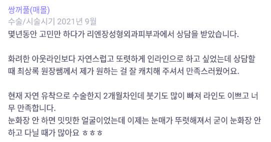 Лиенжан гоо сайхны мэс заслын эмнэлэг ★★★★★ 5.0 [바비톡] 쌍꺼풀 / 3개월차 / 닉네임 : 하나사마 | 2022.01.25 | 19 Сэтгэгдэл жагсаалт руу