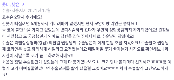 Лиенжан гоо сайхны мэс заслын эмнэлэг ★★★★★ 5.0 [바비톡] 코성형 / 2개월차 / 닉네임 : 닉넴11111 | 2022.03.15 | 20 Сэтгэгдэл жагсаалт руу