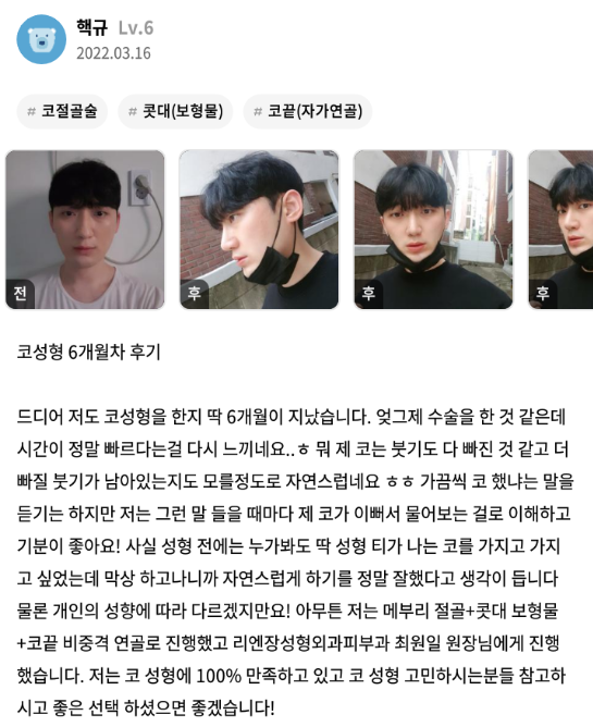 Лиенжан гоо сайхны мэс заслын эмнэлэг ★★★★★ 5.0 [강남언니] 코성형 / 6개월차 / 닉네임 : 핵규 | 2022.05.10 | 15 Сэтгэгдэл жагсаалт руу