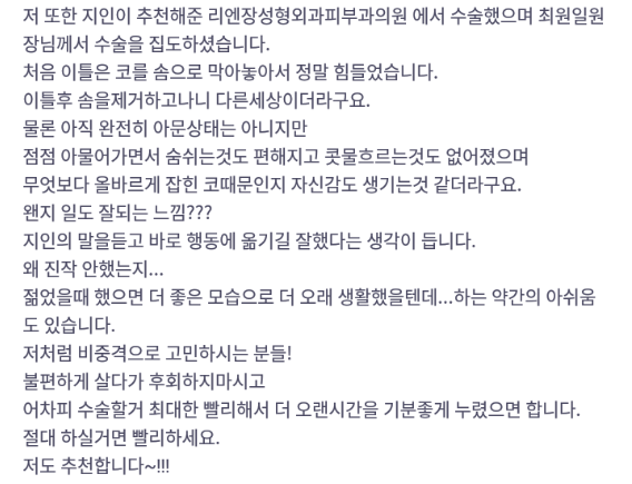 Лиенжан гоо сайхны мэс заслын эмнэлэг ★★★★★ 5.0 [바비톡] 코성형 / 1개월차/ 닉네임:슈퍼츄 | 2022.10.24 | 16 Сэтгэгдэл жагсаалт руу