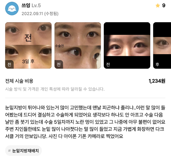 Лиенжан гоо сайхны мэс заслын эмнэлэг ★★★★★ 5.0 [강남언니] 눈밑재배치 / 1개월차/ 닉네임: 쓰잉 | 2023.01.05 | 17 Сэтгэгдэл жагсаалт руу