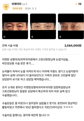 Лиенжан гоо сайхны мэс заслын эмнэлэг ★★★★★ 5.0 [강남언니] 하안검, 눈썹거상술 / 1개월차/ 닉네임: 비제이띠 | 2024.03.07 | 16 Сэтгэгдэл жагсаалт руу