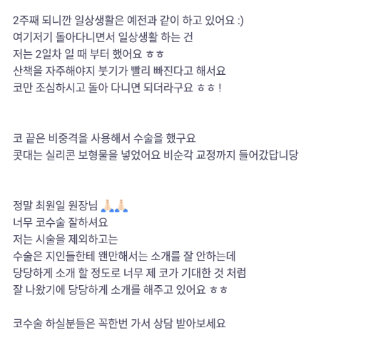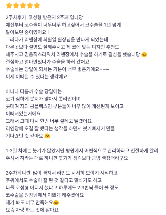 Лиенжан гоо сайхны мэс заслын эмнэлэг ★★★★★ 5.0 [바비톡] 코성형 / 2주차 / 닉네임 : 이뽀이쀼2 | 2024.03.12 | 14 Сэтгэгдэл жагсаалт руу